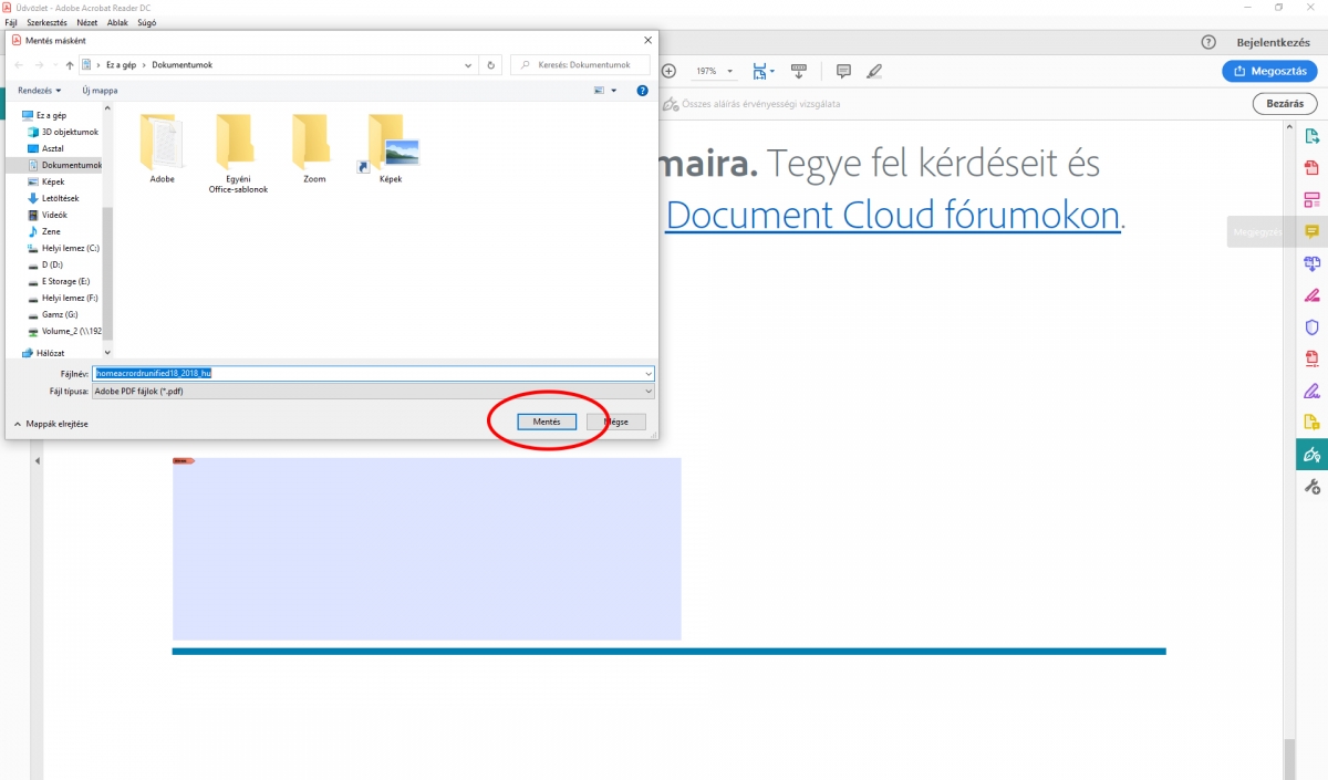 11. A következÅ‘ lépésben mentsük el fájlként a szignót a Sajátgégre, jelen esetben a Dokumentumok mappába.Â