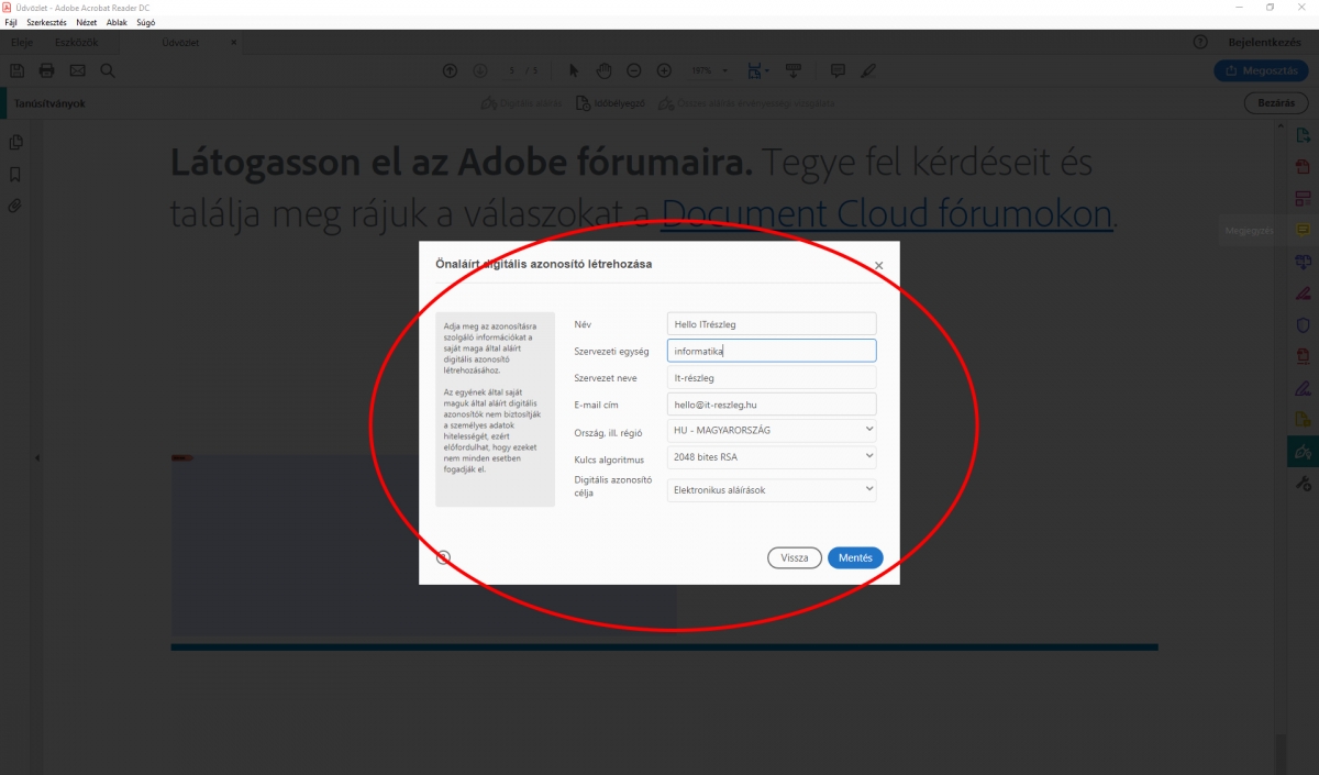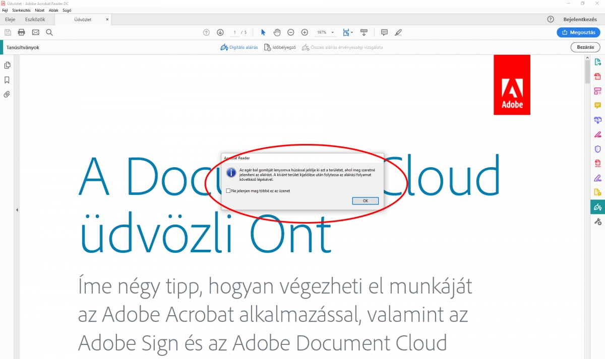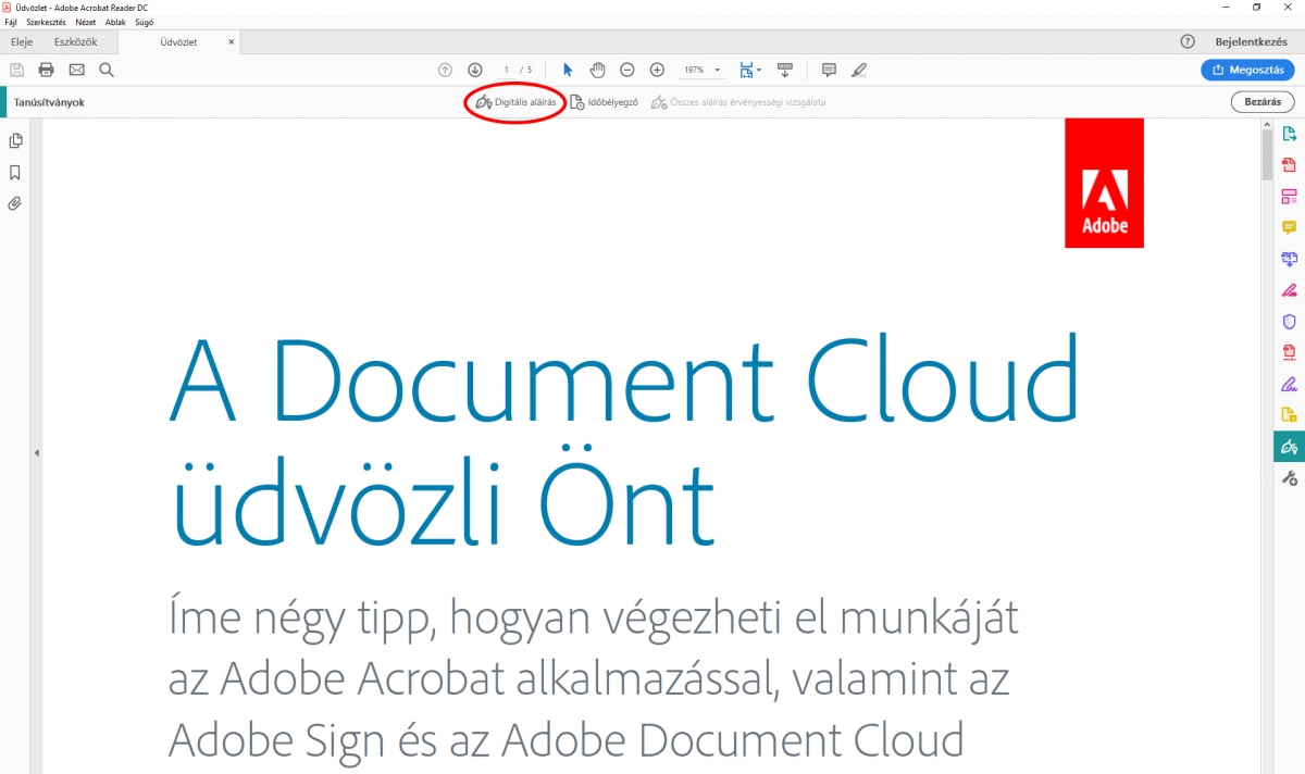 Digitális aláÃrás beállÃtása az Adobe Acrobat Readerrel
