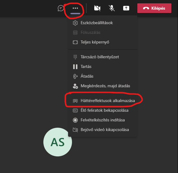 A háttér beállítása a Teamsben a csatlakozáskor, vagy a beszélgetés alatt lehetséges. A felső menüben kattintsunk a „További műveletek” (…) opcióra, majd a „Háttéreffektusok