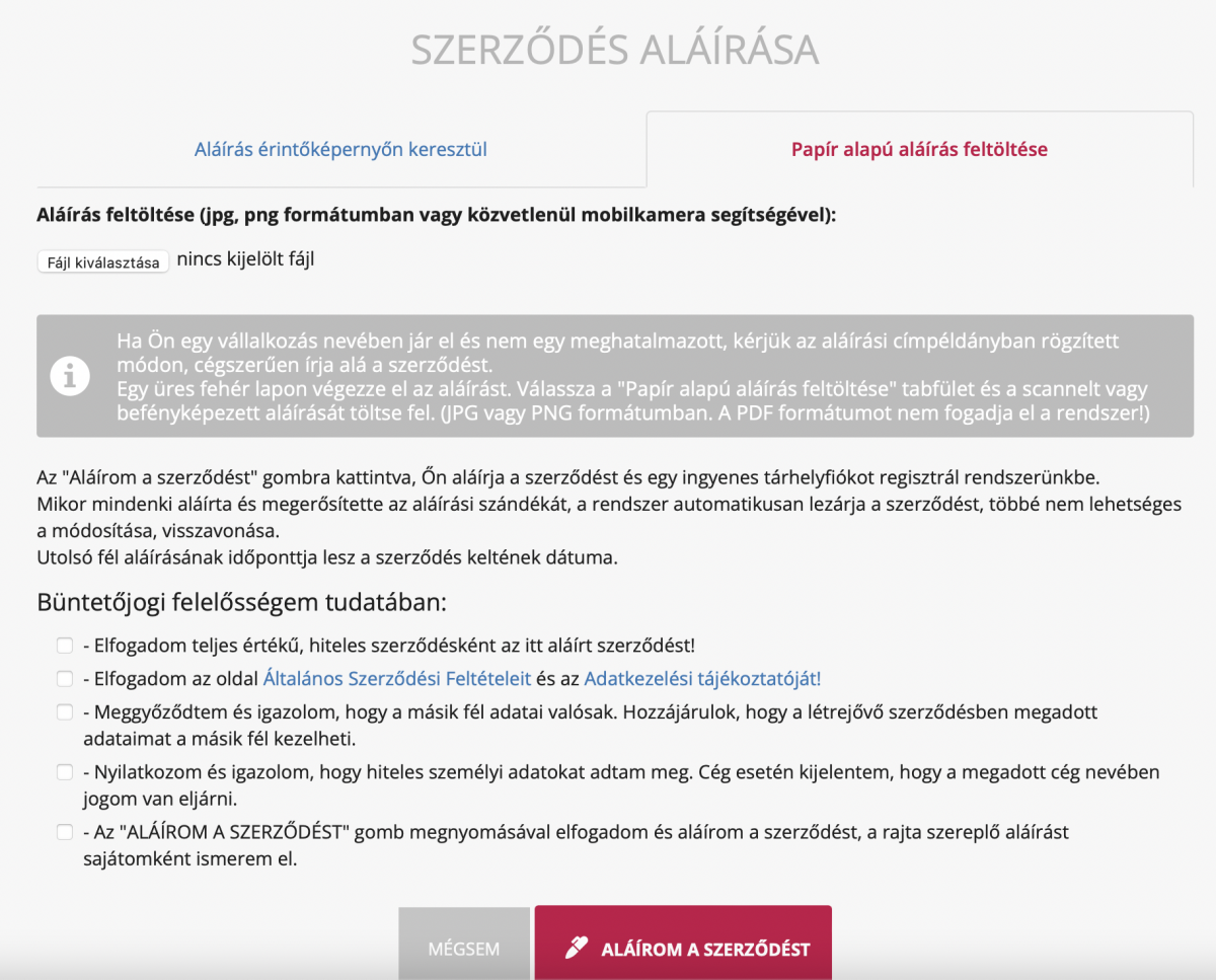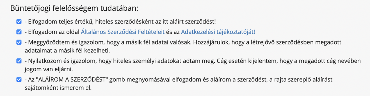 6. Majd rá kell nyomni az „AláÃrom a szerzÅ‘dést” gombra az alján: