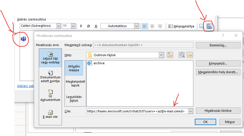 Az OK gombot megnyoma kész is a Teams link az aláírásunkban.